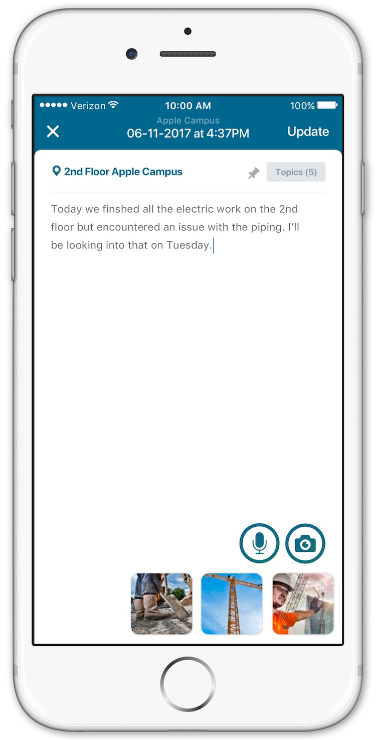 Making it easy for workers to capture and document details at the job site was a high priority for the application. Tracking progress is important for workers and managers alike, allowing them to quickly and easily communicate potential delays or unexpected costs that may occur due to unforeseen complications. Having proper documentation and records up to decades after the project’s completion can save companies millions of dollars in potential litigation costs.